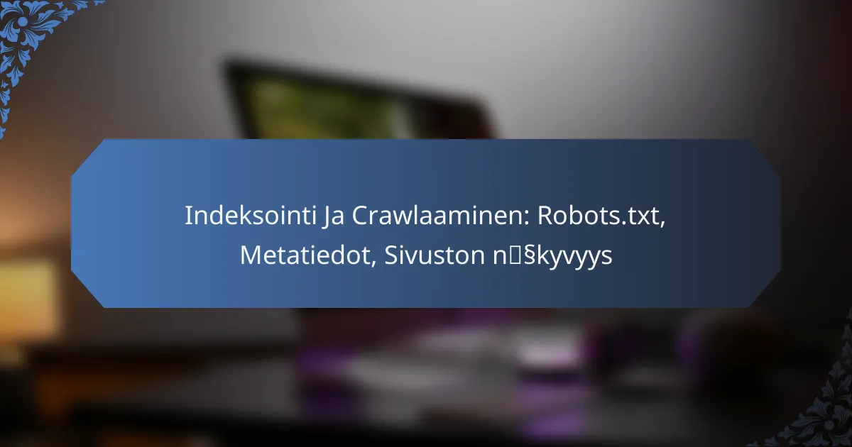 Indeksointi ja crawlaaminen ovat keskeisiä prosesseja, jotka määrittävät, miten hakukoneet löytävät ja järjestävät verkkosivustojen sisältöä. Erityisesti multimedia, kuten kuvat ja videot, vaikuttaa indeksoinnin tehokkuuteen ja käyttäjäengagementiin, mikä puolestaan voi parantaa sivuston näkyvyyttä hakutuloksissa. Mitkä ovat indeksoinnin ja crawlaamisen peruskäsitteet? Indeksointi ja crawlaaminen ovat keskeisiä prosesseja, jotka määrittävät, miten hakukoneet löytävät ja järjestävät verkkosivustojen sisältöä. Indeksointi tarkoittaa sitä, että hakukoneet tallentavat ja luokittelevat verkkosivujen tietoja, kun taas crawlaaminen viittaa siihen, miten hakukoneet skannaavat verkkosivuja ja keräävät tietoa niiden sisällöstä. Indeksoinnin määritelmä…