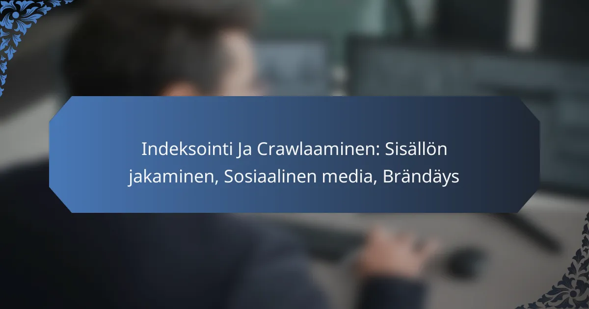 Indeksointi ja crawlaaminen ovat keskeisiä prosesseja, jotka määrittävät, miten hakukoneet löytävät ja järjestävät verkkosivustojen sisältöä. Erityisesti multimedia, kuten kuvat ja videot, vaikuttaa indeksoinnin tehokkuuteen ja käyttäjäengagementiin, mikä puolestaan voi parantaa sivuston näkyvyyttä hakutuloksissa. Mitkä ovat indeksoinnin ja crawlaamisen peruskäsitteet? Indeksointi ja crawlaaminen ovat keskeisiä prosesseja, jotka määrittävät, miten hakukoneet löytävät ja järjestävät verkkosivustojen sisältöä. Indeksointi tarkoittaa sitä, että hakukoneet tallentavat ja luokittelevat verkkosivujen tietoja, kun taas crawlaaminen viittaa siihen, miten hakukoneet skannaavat verkkosivuja ja keräävät tietoa niiden sisällöstä. Indeksoinnin määritelmä…