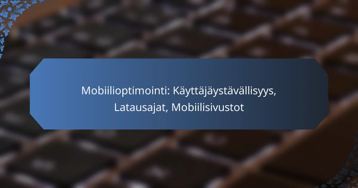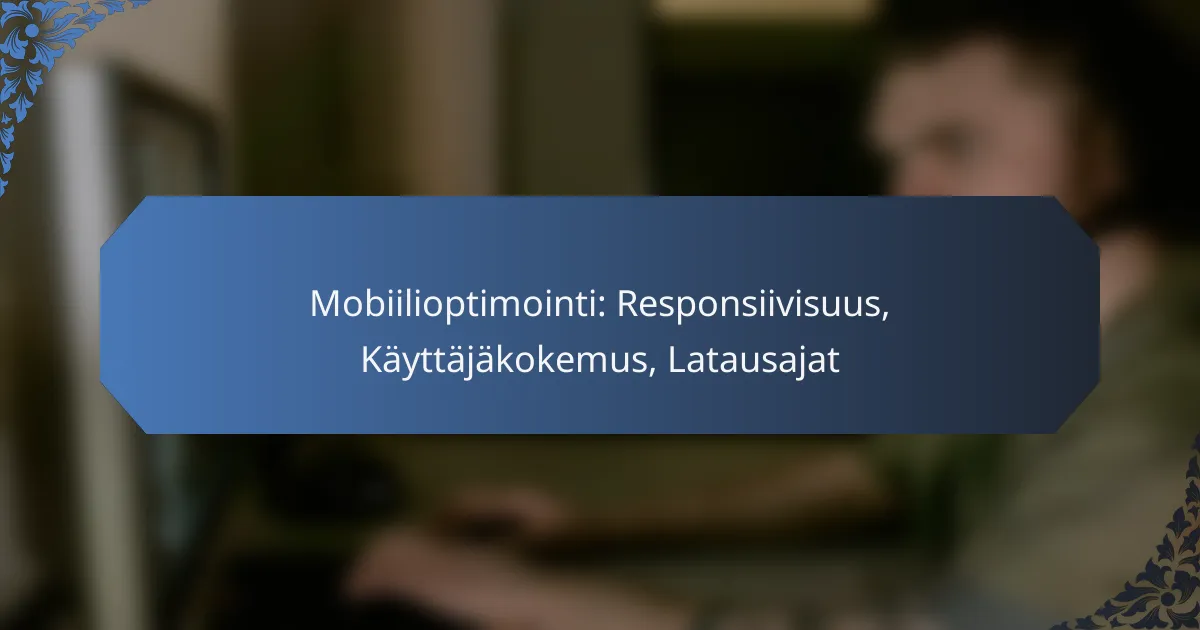 Mobiilioptimoinnin ohjeet ja standardit keskittyvät varmistamaan, että verkkosivustot toimivat tehokkaasti mobiililaitteilla. Tärkeimpiä ohjeita ovat responsiivinen suunnittelu, nopea latausaika ja käyttäjäystävällinen navigointi.