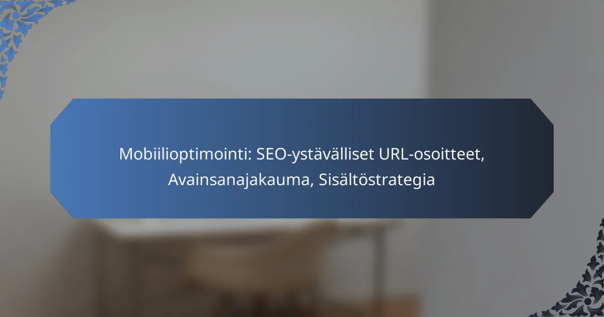 Mobiilioptimointi on ratkaiseva tekijä käyttäjäkokemuksen parantamisessa ja hakukonesijoitusten nostamisessa. SEO-ystävälliset URL-osoitteet ja oikea avainsanajakauma ovat keskeisiä elementtejä, jotka auttavat varmistamaan, että sisältösi on helposti löydettävissä ja houkuttelee mobiilikäyttäjiä. Hyvin suunniteltu sisältöstrategia yhdistettynä näihin tekijöihin voi merkittävästi lisätä konversioprosentteja ja kilpailuetua markkinoilla. Key sections in the article: Toggle Mitkä ovat mobiilioptimoinnin keskeiset hyödyt? Käyttäjäkokemuksen parantaminen mobiililaitteilla Hakukonesijoitusten nostaminen Konversioprosenttien kasvattaminen Verkkosivuston latausnopeuden optimointi Kilpailuedun saavuttaminen Kuinka luoda SEO-ystävällisiä URL-osoitteita? URL-osoitteen rakenne ja pituus Avainsanojen käyttö URL-osoitteissa Erityismerkkien välttäminen 301-uudelleenohjausten hyödyntäminen URL-osoitteiden…