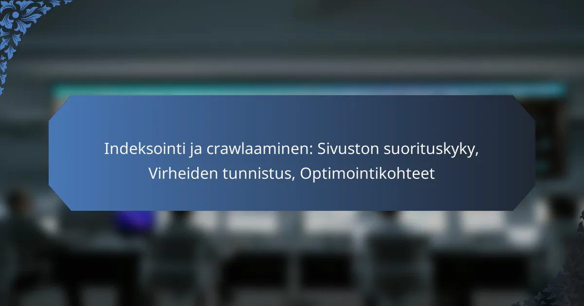 Indeksointi ja crawlaaminen: Sivuston suorituskyky, Virheiden tunnistus, Optimointikohteet