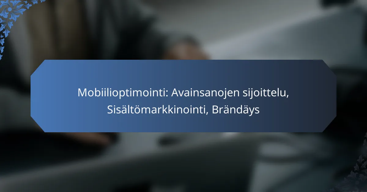 Mobiilioptimointi tarkoittaa verkkosivuston mukauttamista mobiililaitteille, jotta käyttäjäkokemus paranee. Keskeisiä elementtejä ovat avainsanojen sijoittelu, sisältömarkkinointi ja brändäys, jotka yhdessä parantavat sivuston näkyvyyttä ja käytettävyyttä mobiilissa.