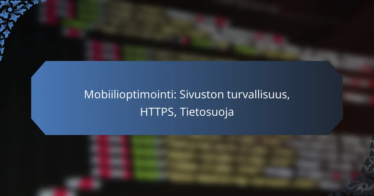 Mobiilisivuston turvallisuuden varmistaminen on elintärkeää, sillä se suojaa käyttäjien tietoja ja parantaa luottamusta. Tärkeimmät toimenpiteet sisältävät HTTPS-protokollan käyttöönoton, tietosuojakäytäntöjen noudattamisen ja säännöllisen tietoturvatestauksen.
